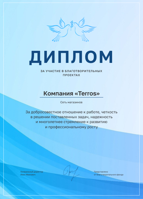 Награда за участие в благотворительных проектах